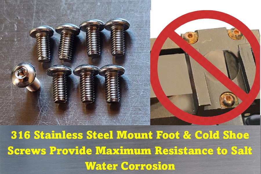 316 stainless steel mount foot and cold shoe screws provide maximum resistance to salt water corrosion